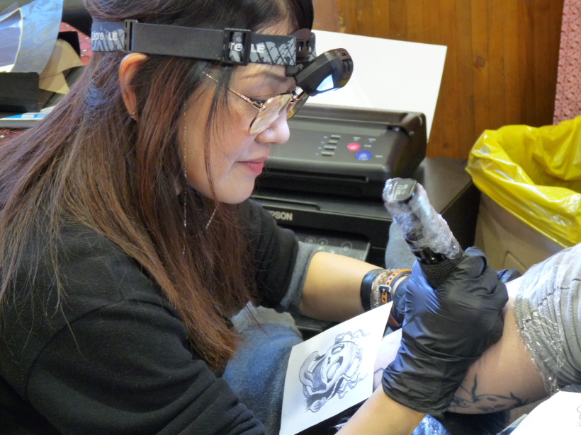 Au milieu de nombreuses créations inspirées du Japon et des mangas, Sakura Japan Tattoo – artiste japonaise installée à Lyon – attire l'attention. Impossible toutefois de photographier son travail d'une délicatesse saisissante. L'homme qui l'accompagne, faisant office de « commercial », explique qu'elle souhaite éviter toute copie. Plusieurs de ses œuvres sont néanmoins visibles sur son Facebook et son Instagram.