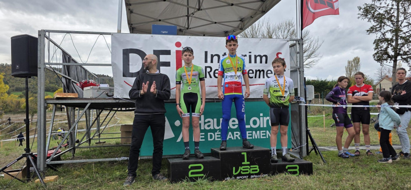 Les championnats de la Haute-Loire se sont déroulés à Brioude, organisés par le Vélo Sport Brivadois sur le complexe de l’EREA. Malgré un ciel gris, l’ambiance est restée conviviale, fidèle à l’esprit du cyclo-cross. En catégorie U9 (poussins), Léo Noëll et Marin Fink se sont classés respectivement 5e et 6e sur 14 participants. En U11 (pupilles), Enzo Noëll a pris la 8e place sur 12 concurrents.