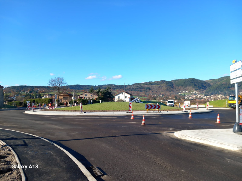 Le trafic s’effectue désormais dans l’anneau du giratoire sur un revêtement provisoire, avec une vitesse limitée à 30 km/h. Cette configuration restera en place jusqu’aux prochaines phases du chantier