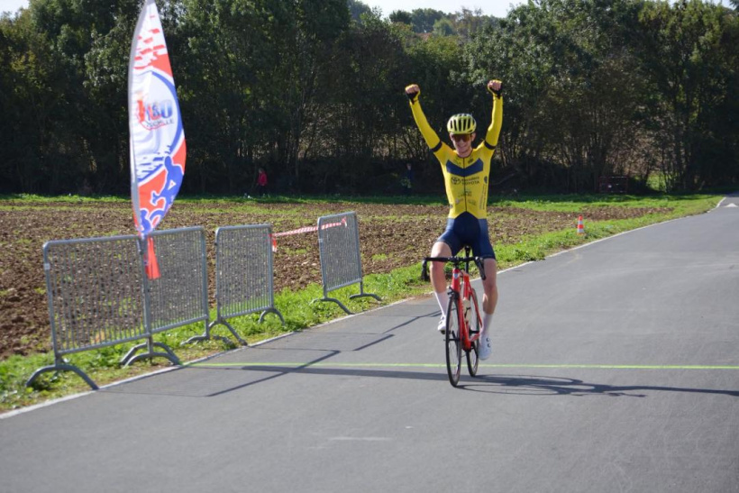 Arno Morel confirme que l’éloignement de ses bases réussit aux coureurs vellaves. Sorti à 20 km de l’arrivée avec deux autres coureurs, il pensait viser la 2ᵉ place, mais l’homme de tête a abandonné après une chute. Motivé, Arno remporte la victoire au sprint.