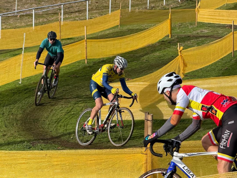 Au cyclo-cross de Meyzieu (69) : Alban Fink, porteur du maillot de champion de la Haute-Loire, profite d’un bon départ pour se placer en tête. Face au champion isérois Maël Jaussaud de l’UC Pontcharra, Alban reste patient et place une attaque décisive dans le dernier tour grâce à une montée sèche. Il franchit la ligne en vainqueur, ajoutant une cinquième victoire à son palmarès dans la discipline.