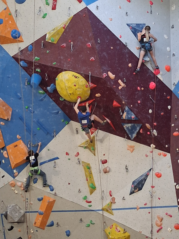 De jeunes grimpeurs U13 et U15 ont rivalisé durant toute la rencontre, face à eux un mur de plus de 10 mètres de hauteur comportant plusieurs voies aux niveaux de difficultés différents, allant du 6b au 8a.