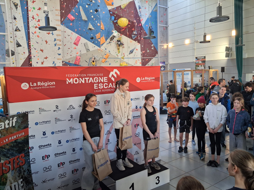 U13 filles : 1ère : Lou Beccaud de « Maurienne Escalade », 2ème : Julia RIVE du Club « Vertige »,