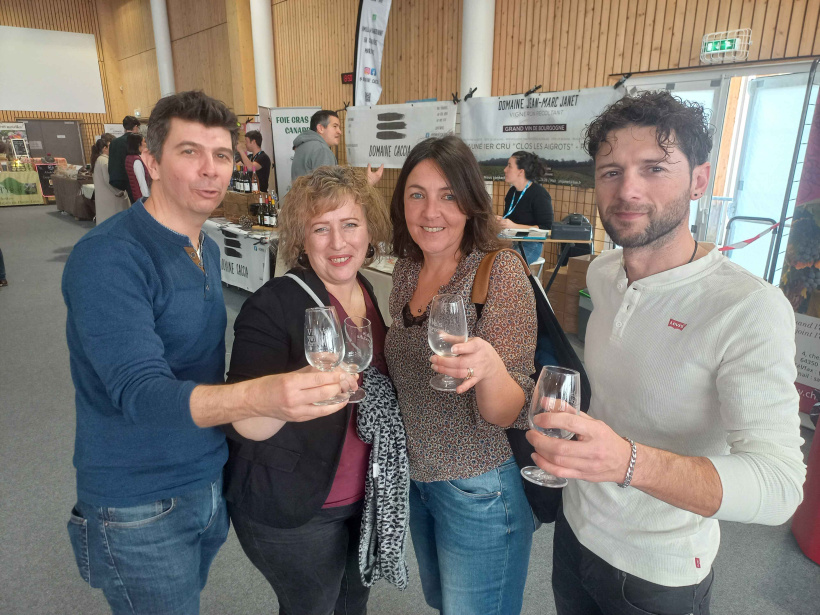 Cédric et Audrey de Saint-Etienne-Lardeyrol et leurs amis Nadège et Serge de Brives-Charensac, se rendent au salon depuis plusieurs années. Appréciant l'ambiance et la taille humaine de l'événement, les quatre amis apprécient découvrir des nouvelles bouteilles.
