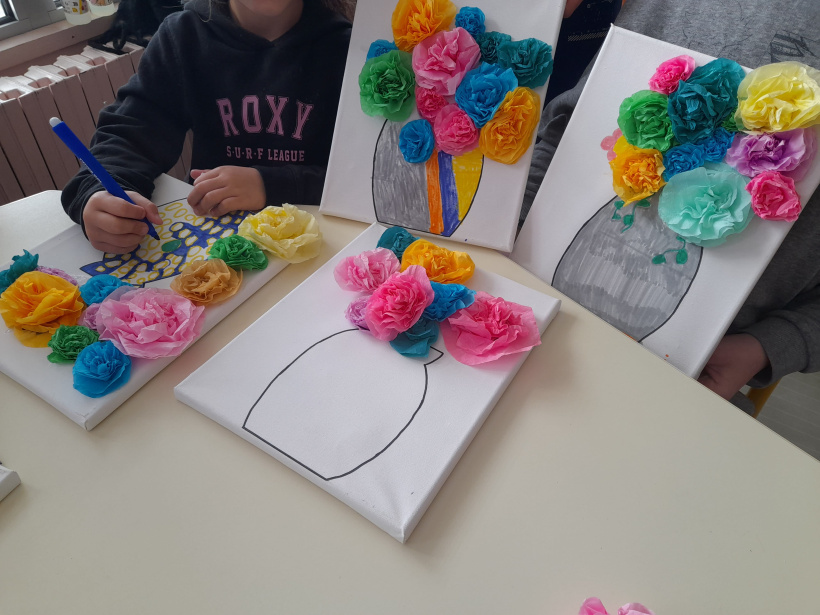 Les activités proposées étaient variées et adaptées aux besoins des enfants. Les élèves ont organisé une pêche à la ligne sur le thème du 1er avril, des ateliers manuels tels que la décoration de poissons d’avril et la réalisation de vases sur toile décorés de fleurs en papier crépon, ainsi qu’une activité culinaire comprenant une fondue au chocolat et un gâteau au yaourt. Ces ateliers ont été conçus pour stimuler les sens, la motricité et l’imaginaire des enfants tout en favorisant un environnement ludique et inclusif.