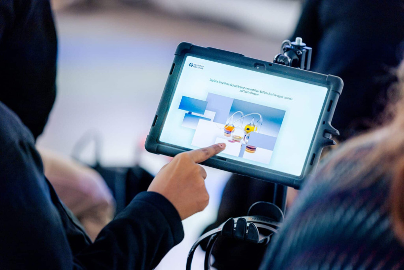 La médiathèque va accueillir les élèves des écoles ainsi que différents groupes d'enfants ou d'adultes : groupes d'adolescents et d'adultes de la Maison pour Tous, Centre de Loisirs, Résidents de Vert Bocage, salariés du chantier d'insertion, apprenants des ateliers socio-linguistiques, membres du Club du Mont Brunelet, etc. Les séances permettent aux groupes de découvrir les œuvres sur un écran géant dans un film à la mise en scène dynamique, et d'échanger, d'approfondir ses connaissances sur les chefs d’œuvres. Les différents groupes ont choisi leur thème : l'eau ; la révolution industrielle ; le tour du monde en 80 minutes ; les 5 sens au Musée ; l'antiquité ; les émotions et sentiments ; la mythologie, etc.