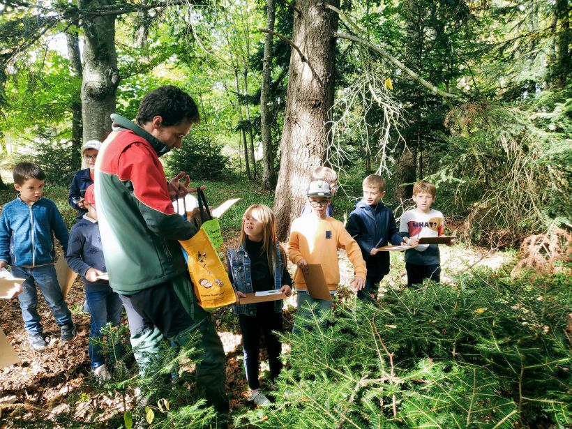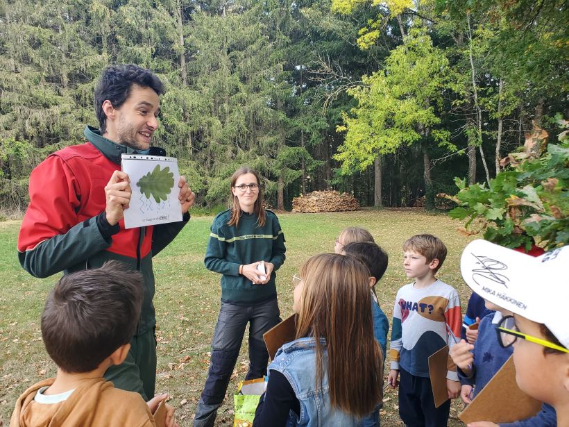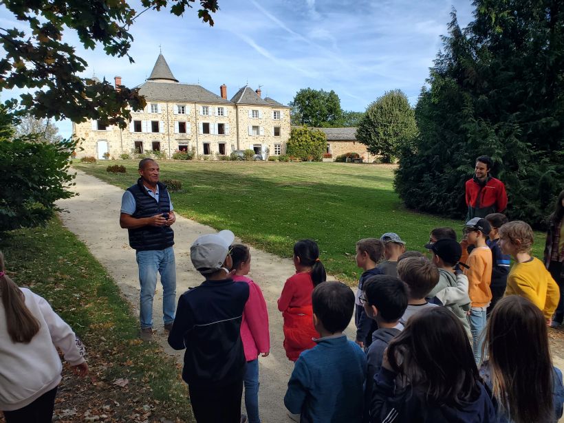 Ce sont les élèves de CP à CE2 des écoles Jean de la Fontaine et Saint-Gabriel qui ont ouvert le bal en bénéficiant d’une visite dédiée au Château de Lavée au mois d’octobre. Menées en partenariat avec l’ONF et Michel Colas des Francs, propriétaire du château, ces visites ont permis aux enfants de se familiariser avec les essences d’arbres et de découvrir le hêtre séculaire qui veille sur le domaine depuis plus de 250 ans. (Une seconde visite sera programmée au printemps pour retrouver les essences d’arbres vues à l’automne).