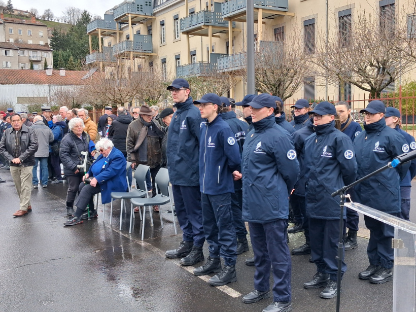 Monsieur le préfet de Haute-Loire, Yvan Cordier donne alors lecture des noms des huit "camarades décédés dans l'exercice de leurs fonctions" en l’honneur desquels plusieurs porte-drapeaux, issus de différents corps, présentent aujourd’hui les couleurs.