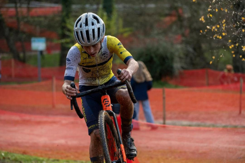 Les U17 (cadets) ont couru le dimanche matin sous une pluie continue. Antoine Bonnaud, bien parti en première ligne, remontait progressivement vers le podium lorsqu’une chute due à une ornière et un piquet mal protégé lui a infligé une blessure à la main, le contraignant à abandonner.