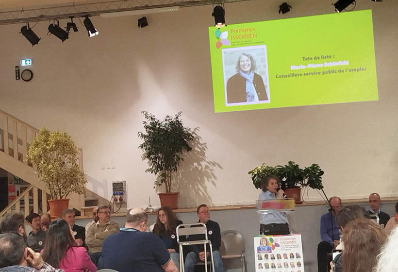 Hier soir lundi 9 mars 2026, se tenait un des derniers grands meetings de campagne du Printemps Issoirien à la Halle aux grains. La liste que nous avions rencontrée au mois de janvier espère faire refleurir l'espoir à Issoire avec en tête de liste Marie-Pierre Schönfeld.