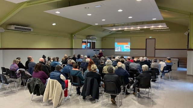Pour sensibiliser la population et proposer des solutions concrètes, une réunion publique s’est tenue le samedi 17 janvier à la salle des fêtes de Saint-Privat. Près de 80 personnes y ont assisté, apiculteurs et habitants des communes voisines confondus. L’intervention de Mme Christine Peyroux, membre bénévole du CIVAM apicole du Velay, a été suivie avec attention.