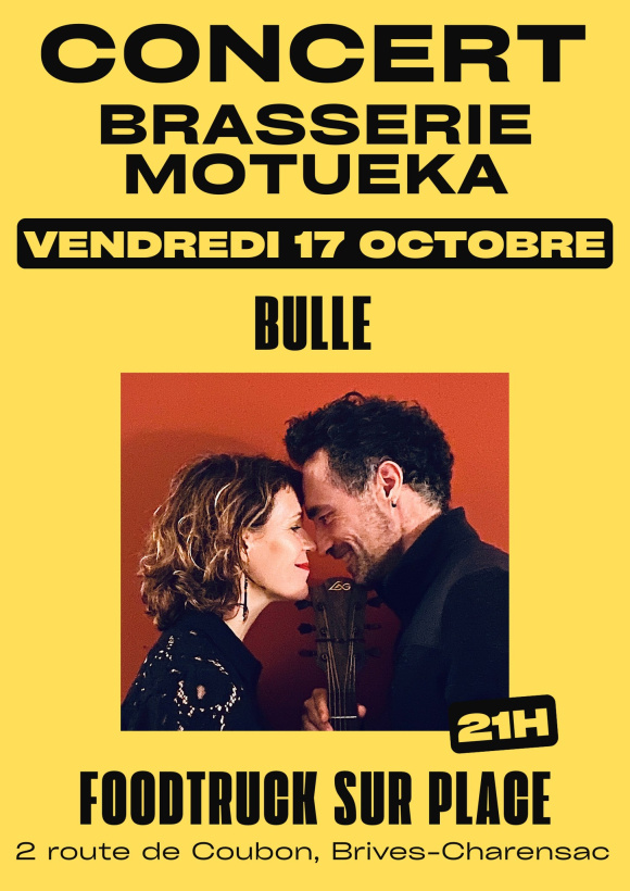 Quoi de mieux qu'un groupe de ziq nommé "Bulle" pour accompagner les bulles des nombreuses bières de la Motueka ? Au programme de la brasserie brivoise, sis au 2, route de Coubon, la formation reprend des classiques du genre, tricotés à leur sauce par les deux complices, et cousus à grand coup de guitare sèche.