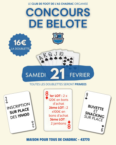 La belote de l'AS Chadrac arrive bientôt à la Maison Pour Tous de Chadrac !