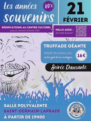 Rendez-vous le 21 février à partir de 19h à la salle polyvalente de Saint-Germain-Laprade pour une soirée conviviale autour d’une délicieuse truffade géante.