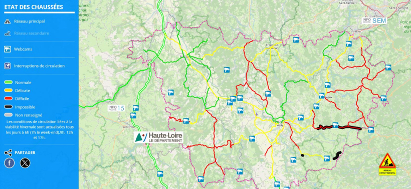 La circulation est difficile sur la majeure partie du réseau routier en Haute-Loire. Seules quelques routes, comme la N88 entre Le Puy et Firminy sont classées en jaune pour circulation délicate selon Inforoute43. En revanche la circulation se fait normalement sur la départementale 103 entre Vorey et Retournac ou encore sur la départementale 90 entre le Puy et Nolhac.