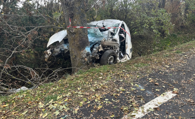 Un Berlingo a, ce jeudi 6 novembre, fait un "tout droit" à l'entrée de Bains dans le sens Saugues Le Puy.