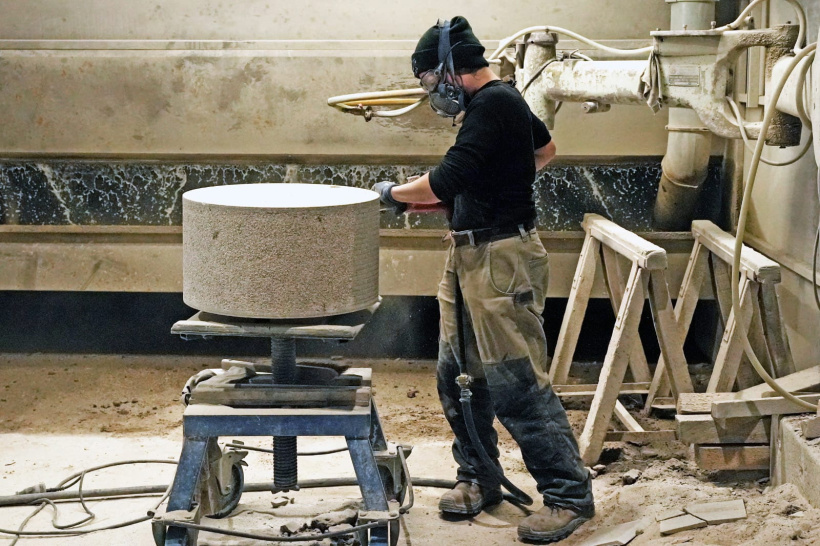 La taille de pierre est un métier physique. Les journées se déroulent souvent dans le bruit des outils et la poussière. "C’est un travail dur pour le dos et les poumons", reconnaît Aurélie. Les équipements de protection sont donc indispensables : masque, lunettes et protections auditives accompagnent chaque journée de travail à l’atelier. Sa passion pour la taille de pierre reste toutefois intacte et la pousse à poursuivre son métier avec la même énergie. "J’irai jusqu’à ce que je ne puisse plus le faire, j’aime trop ça."