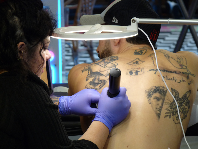 Elle rajoute qu'assister à une séance de tatouage de sa sœur et de sa meilleure amie – ici même, au salon – lui a permis de surmonter son appréhension. Cette année, c'est elle qui a amené deux amies et une cousine prêtes à sauter le pas.