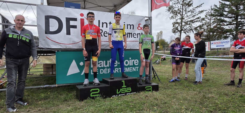 Les championnats de la Haute-Loire se sont déroulés à Brioude, organisés par le Vélo Sport Brivadois sur le complexe de l’EREA. Malgré un ciel gris, l’ambiance est restée conviviale, fidèle à l’esprit du cyclo-cross. En catégorie U9 (poussins), Léo Noëll et Marin Fink se sont classés respectivement 5e et 6e sur 14 participants. En U11 (pupilles), Enzo Noëll a pris la 8e place sur 12 concurrents.