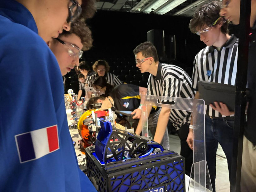 Le départ a eu lieu tôt le matin depuis Yssingeaux, avec tout le matériel nécessaire. Une fois sur place, les élèves ont installé leur espace de travail, fait les derniers réglages et testé le robot avant l’inspection. Après la cérémonie d’ouverture, ils ont défini leur stratégie pour les matchs, en étudiant attentivement leurs adversaires.