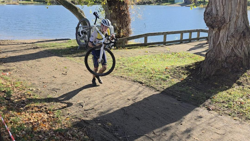 Le départ des U17 (cadets) sourit à Antoine Bonnaud, qui s’installe aux avant-postes. Mais après un déraillement, il doit courir jusqu’à la zone technique. Il revient pourtant dans la course et profite d’un ennui mécanique du leader pour passer en tête dans le dernier tour. Hélas, une nouvelle défaillance de son vélo l’oblige à terminer à pied, le contraignant à la 5e place sur 27 participants. Tom Robert, lui, se classe 19e, en progrès constant dans les passages techniques.