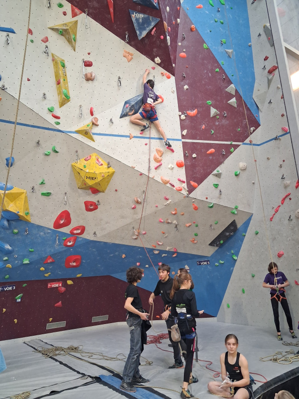 De jeunes grimpeurs U13 et U15 ont rivalisé durant toute la rencontre, face à eux un mur de plus de 10 mètres de hauteur comportant plusieurs voies aux niveaux de difficultés différents, allant du 6b au 8a.