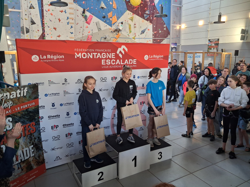 U13 filles : 1ère : Lou Beccaud de « Maurienne Escalade », 2ème : Julia RIVE du Club « Vertige »,
