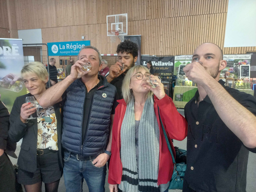 Cédric et Audrey de Saint-Etienne-Lardeyrol et leurs amis Nadège et Serge de Brives-Charensac, se rendent au salon depuis plusieurs années. Appréciant l'ambiance et la taille humaine de l'événement, les quatre amis apprécient découvrir des nouvelles bouteilles.