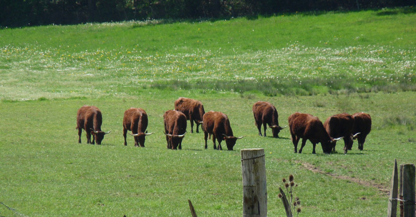 En agriculture biologique depuis 2016, les « belles rousses aux grandes cornes » ne sont autres que leurs vaches Salers, élevées entre Velay en hiver et Mézenc en été.
