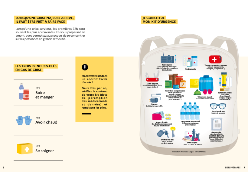 Destiné à la "survie", celui-ci apprend à vivre durant les 72 premières heures. "Nous devons nous préparer pour continuer à vivre normalement en cas de crise", développe, en ce sens, le gouvernement.
