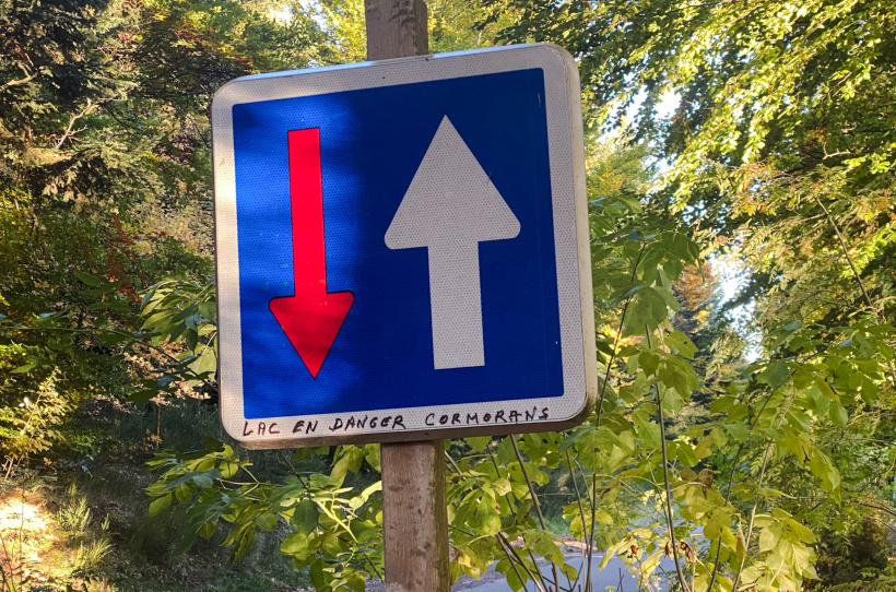 Au cœur de cette controverse, des panneaux ont récemment été tagués aux abords du site : « lac en danger cormoran ».