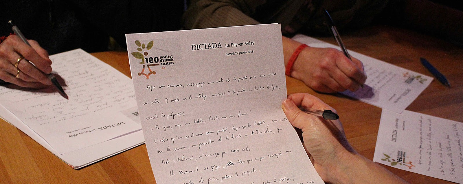 Autre moment incontournable de ce Festenal, attendu chaque année de pied ferme par les occitanistes : la dictada. Organisée en partenariat avec l’Institut d’études occitanes de Haute-Loire (IEO 43), dont le président Christian Chabanon a procédé à la lecture, la dictée occitane est un moment de confrontation au paradoxe de cette langue. Si littéraire quelques siècles en arrière, elle s'est peu à peu déclinée en une foultitude de patois s’étant transmis presque exclusivement oralement depuis que le Français l’a supplantée.