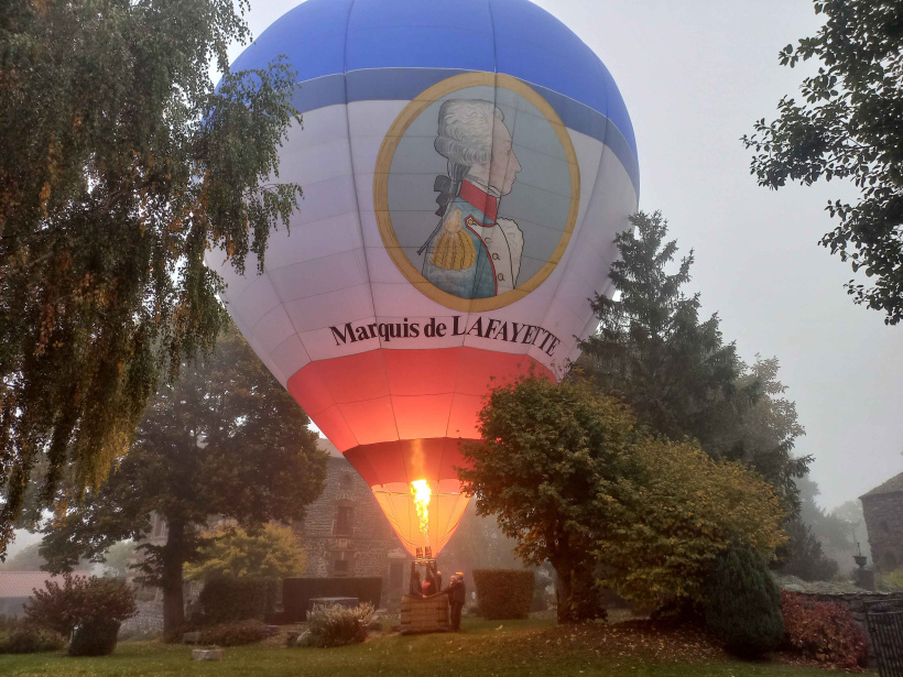 En outre, si la présentation du ballon se faisait dans la brume du domaine de Barret, à Sanssac-l'Église, c'est en référence à un autre acteur local de la Guerre d'Indépendance, le Général de Lestrade, compagnon d'armes du Marquis de Lafayette.