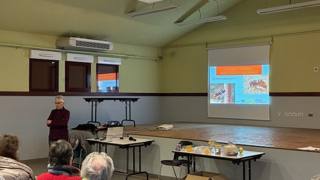 Durant près de deux heures, Mme Peyroux a expliqué le cycle de vie du frelon asiatique, son impact sur les écosystèmes locaux, et les moyens d’agir à la fois individuellement et collectivement pour limiter sa prolifération. Elle a insisté sur l’importance de la capture des reines fondatrices au début du printemps, de début mars à mi-mai, étape clé pour réduire la formation de nouvelles colonies. Un seul nid peut en effet contenir entre 2 000 et 3 000 frelons, capables de s’attaquer aux ruchers alentour.