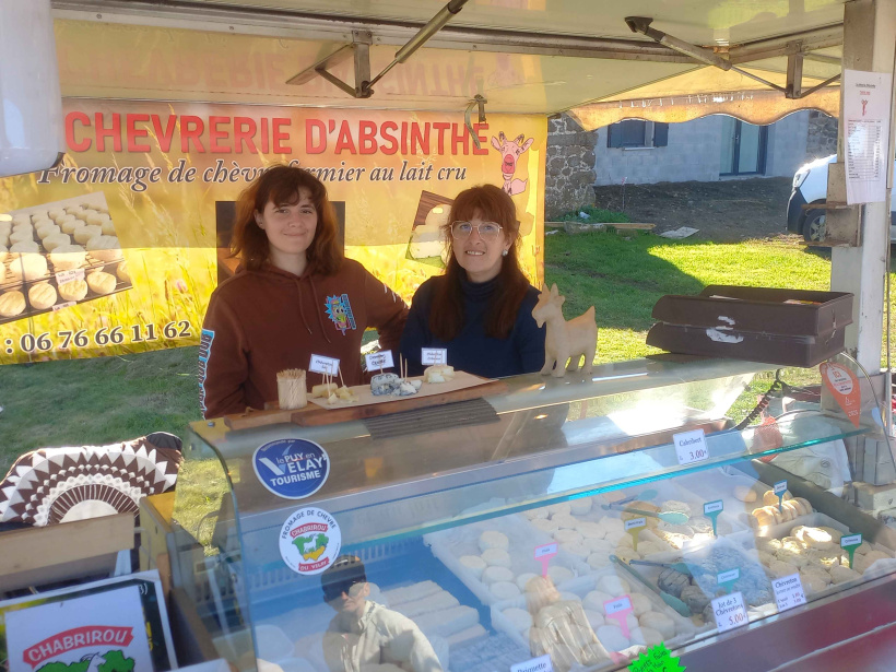 Pour Virginie et Marina, au stand de la chèvrerie d'absinthe, c'est leur quatrième fois à la foire et elles nous confient apprécier l'ambiance de l'événement. "Le dimanche, c'est le plus marrant", rajoute Virginie. Son mari, jouera d'ailleurs le rôle de la mascotte présente ce dimanche, évidemment en forme de pomme.