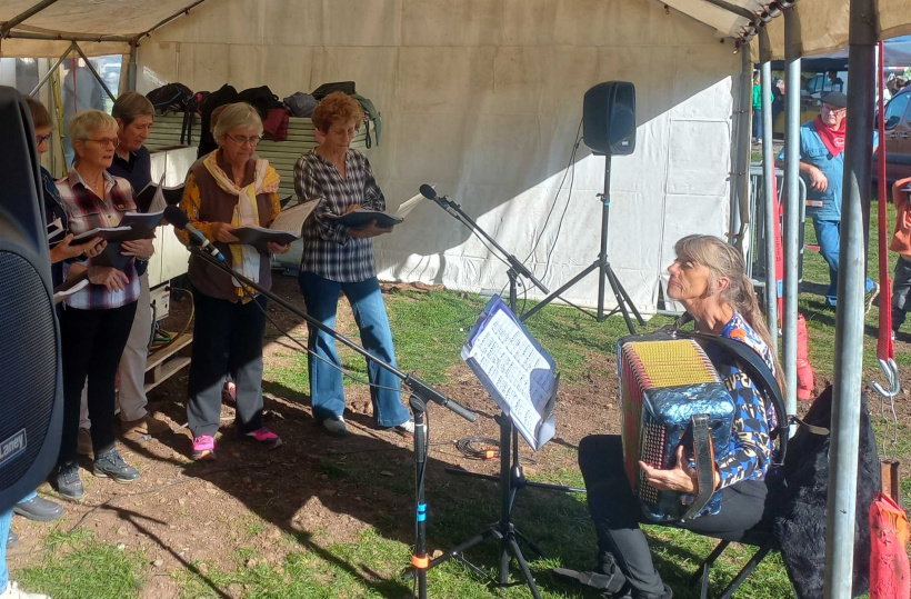 En effet, différentes animations sont prévues, on pouvait déjà entendre, la veille, la chorale du cœur du château de Polignac, sur un air d'accordéon. "Nous allons prolonger le soleil, [...], si vous voulez vous joindre à nous, vous pouvez" disait la musicienne.