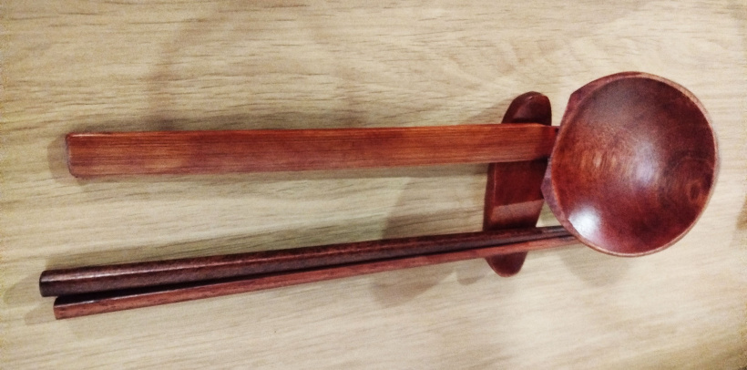 Pour la pratique des baguettes par contre, on repassera.... Se servir de baguettes pour pincer, facile, mais lorsqu'il y a des nouilles à enrouler, cela se complique... D'autant plus quand il y a du bouillon. Alors à force d'éclabousser notre collègue de repas, nous avons finalement décidé d'opter pour la version européenne plus sage : la fourchette...