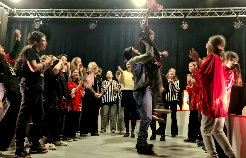 Chaque équipe ne dispose que de quelques secondes pour se concerter avant d’entrer en scène. Les élèves ont ainsi fait preuve d’une grande capacité d’adaptation, construisant des histoires cohérentes tout en veillant à laisser une place à chacun.