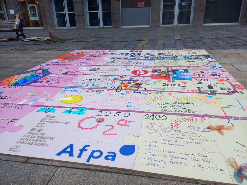 "[Aujourd'hui], donc il y aura des discours, des chants, un grand puzzle participatif. On s'est dispatché les différentes années où il y a eu des droits des femmes qui ont été défendus, et des lois qui sont sorties. Et à la fin sur la place de la mairie, il y aura une danse." nous raconte Carole.