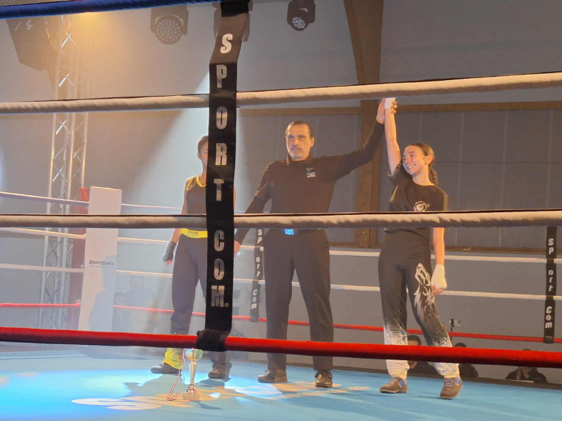De son côté, Fanny Croset poursuit sa préparation en Full Contact et a brillé lors du gala Fighting Night 9 à Montceau-les-Mines (71). Face à Oriana Concieicao de la Full Contact Academy (71), Fanny a montré toute sa puissance et sa précision. Après avoir imposé son style dès la première reprise, elle a enchaîné avec un coup de poing sauté spectaculaire dès la deuxième reprise, provoquant l’arrêt temporaire du combat pour saignerement nasal de l’adversaire. Malgré plusieurs interruptions, Fanny a maintenu sa concentration et sa pression, et en début de quatrième reprise, l’arbitre a arrêté le combat, offrant la victoire à la blavozienne.