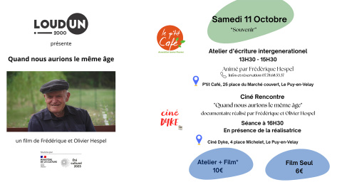 Ce film traite de la transmission et a été tourné au Monastier-sur-Gazeille par Frédérique et Olivier Hespel. Dix enfants du centre de loisirs y rencontrent Dix résidents de l’Ehpad et échangent sur l’enfance d’hier, celle d’aujourd’hui et de demain. Projection suivi d’une discussion avec la réalisatrice.